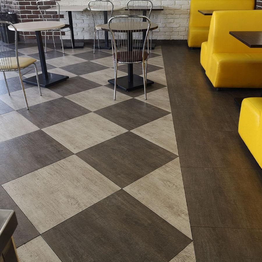 Артикул товара — 00-00001677. Керамогранит этой коллекции отличается прочностью и долговечностью, что делает его идеальным выбором для использования в помещениях с высокой проходимостью.