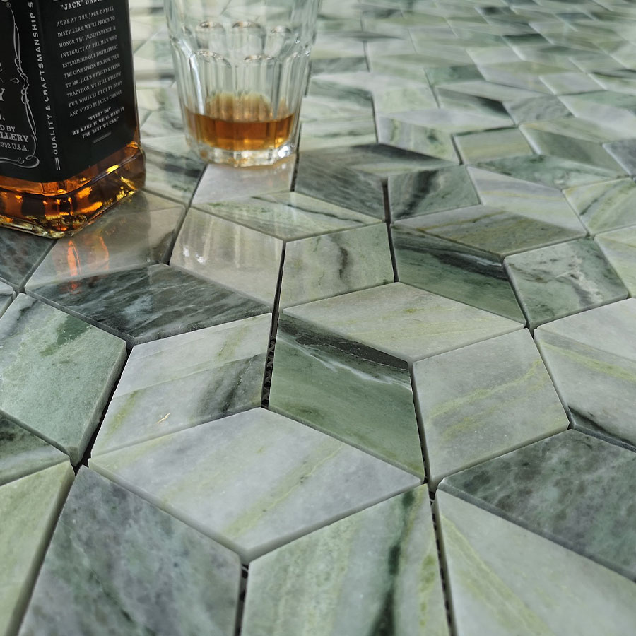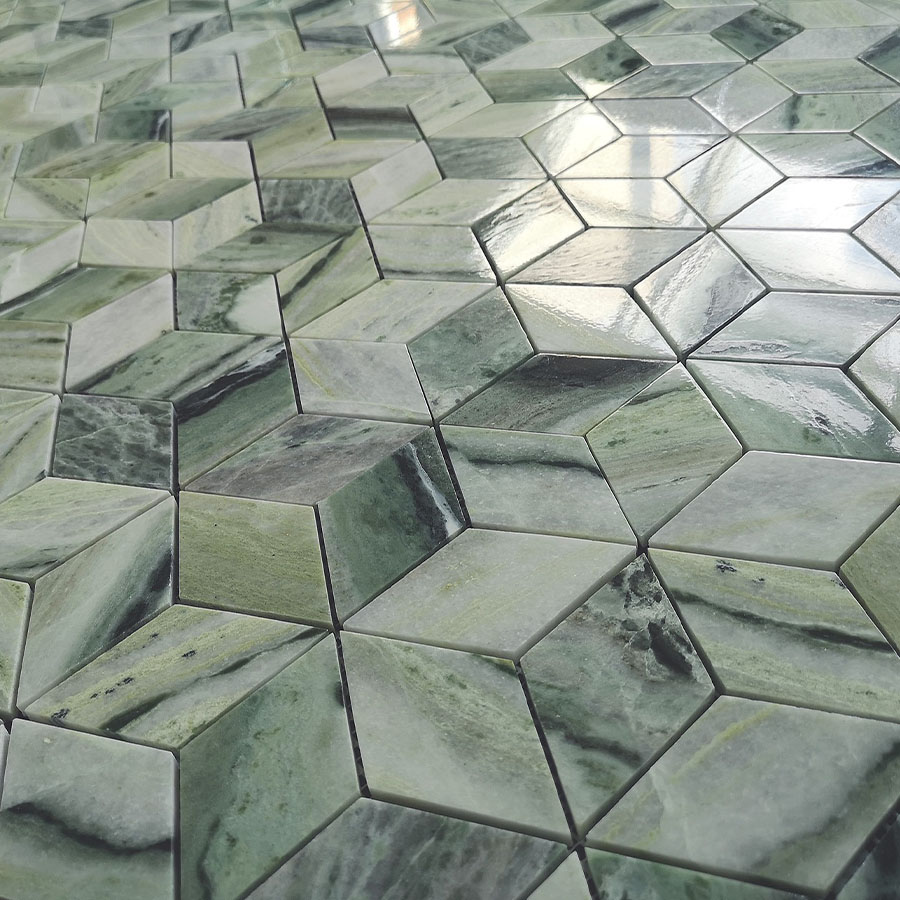 Коллекция Pietrine отличается высоким качеством и оригинальным дизайном. Мозаика выполнена в зелёном цвете, который ассоциируется с природой и свежестью.