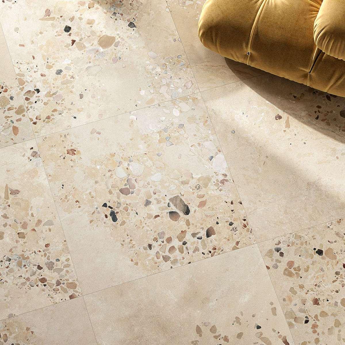Керамогранит Fioranese I Cocci Siciliani Sabbia 90x90 — это квадратная матовая плитка, которая станет отличным решением для вашего пола. Она выполнена в бежевом цвете с эффектом терраццо, что придаёт ей современный и стильный вид.