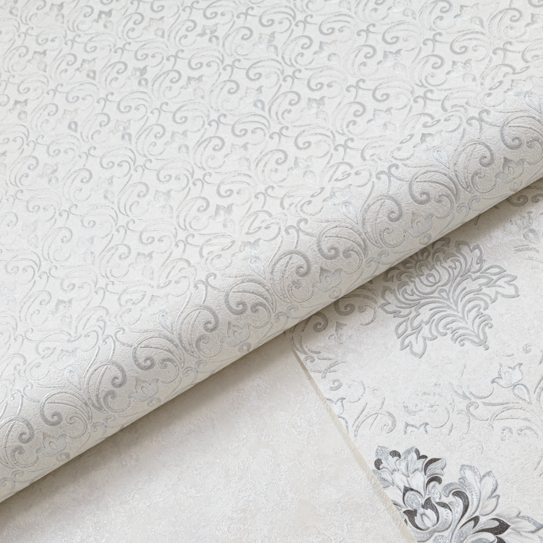 Дизайн обоев ― белые вензеля ― добавит изысканности и элегантности в интерьер. Они подойдут для гостиной, спальни или прихожей.