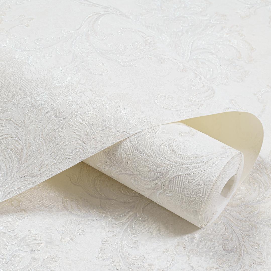 Обои имеют рисунок «Дамаск», который придаёт интерьеру изысканность и элегантность. Белый цвет обоев ― универсальный выбор, который гармонично впишется в любой стиль интерьера.