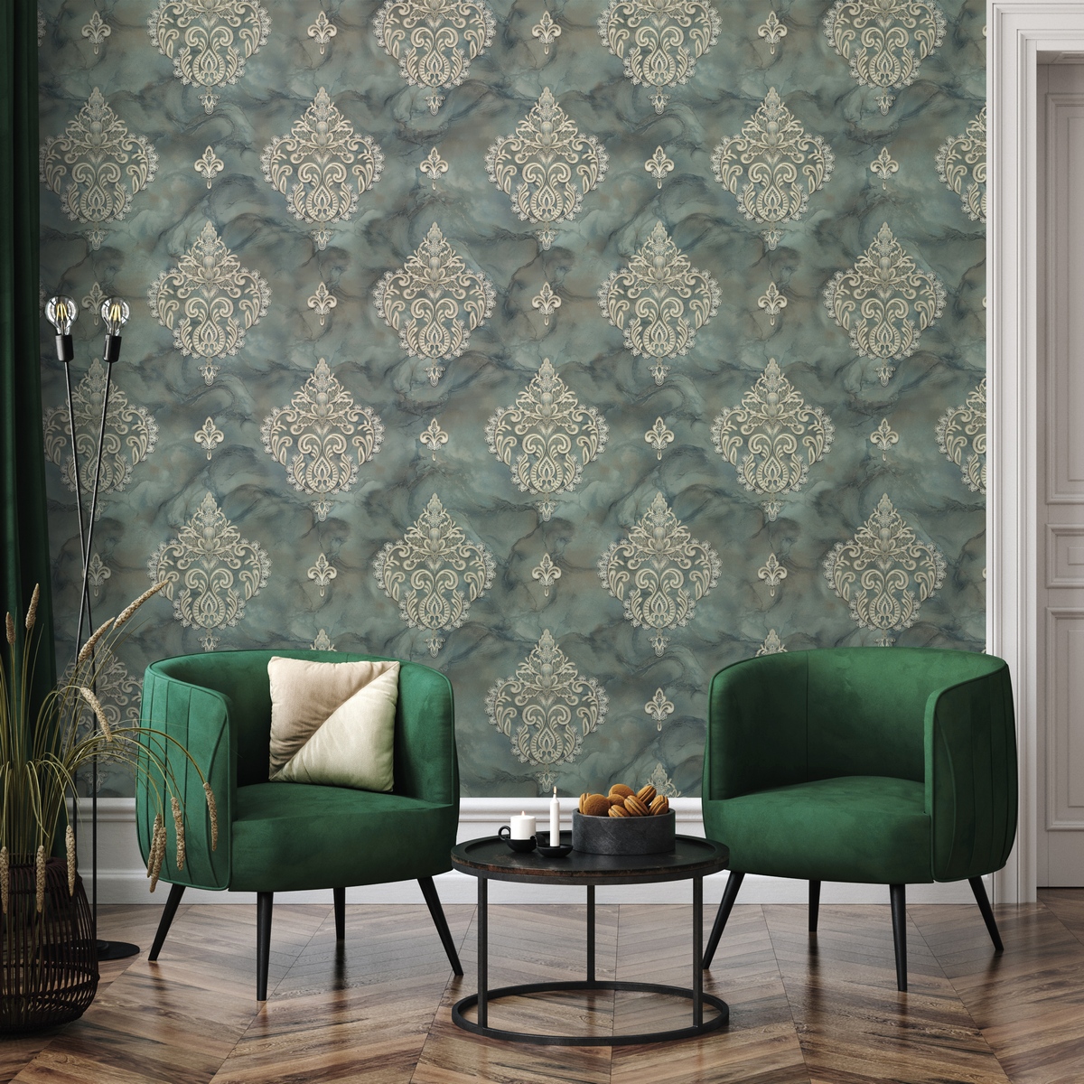 Рисунок в стиле дамаск и классический синий цвет привносят в интерьер роскошь и элегантность. Эти обои станут прекрасным выбором для тех, кто ценит качество, стиль и комфорт.
