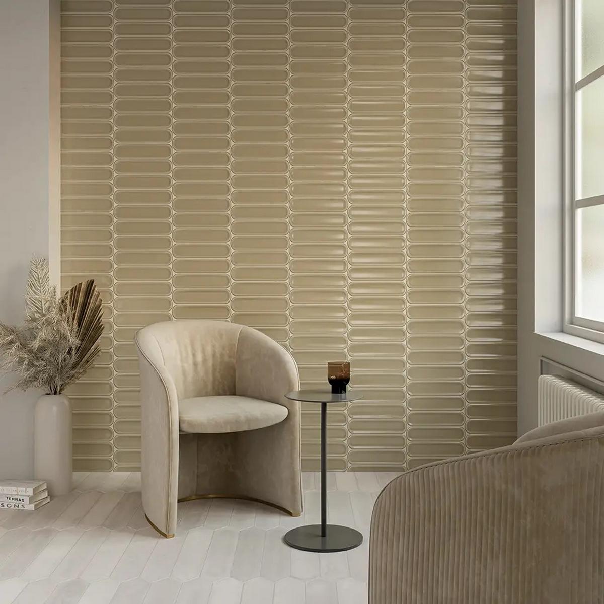Прямоугольная форма плитки обеспечивает лёгкость монтажа и позволяет создавать гармоничные композиции. Оливковый цвет плитки добавит в ваш интерьер нотку свежести и элегантности.