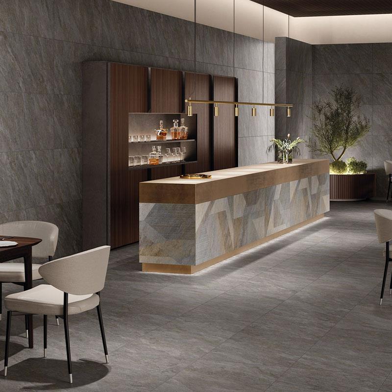 Коллекция Dicta от производителя Monocibec отличается стильным дизайном и долговечностью. Керамогранит в сером цвете имеет крупные размеры (60x120 см), что упрощает укладку и позволяет создать гармоничное покрытие.
