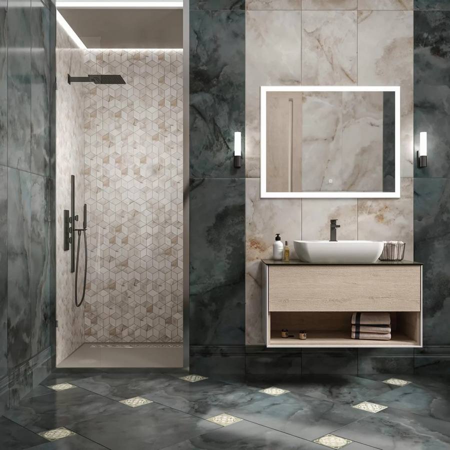 - Реттифицированная плитка — это материал с идеально ровными краями, что обеспечивает лёгкость монтажа и безупречный внешний вид.