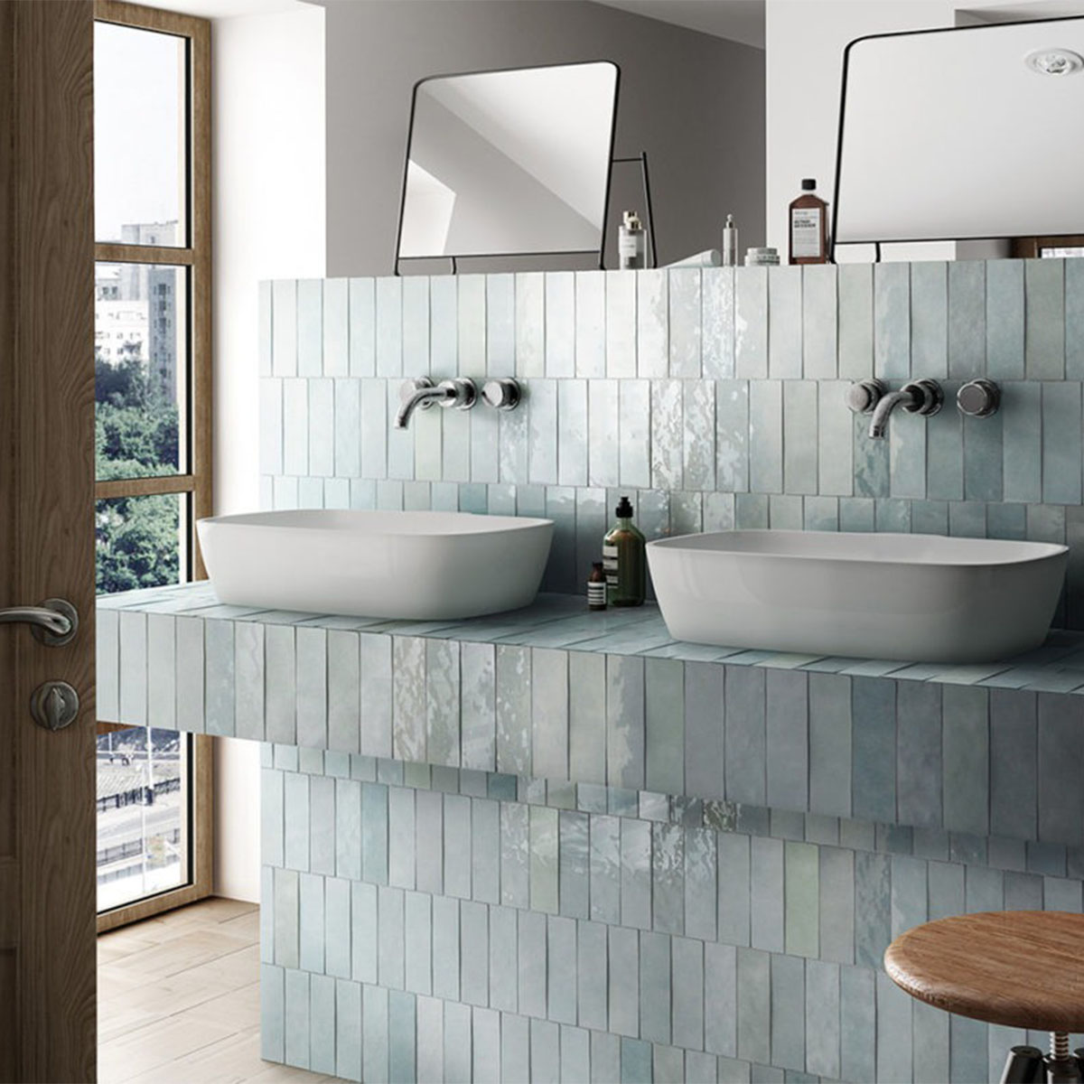 Плитка в нежно-голубом цвете смотрится очень свежо и ассоциируется с морем и лёгкостью. Глянцевая поверхность красиво отражает свет и делает интерьер более воздушным. Мы использовали её в ванной комнате и получили ощущение настоящего отдыха у воды.