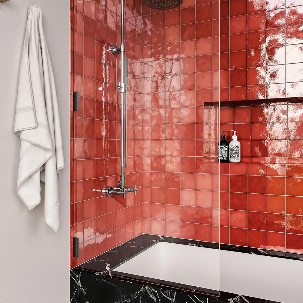 Красная глянцевая керамическая плитка для стен смотрится эффектно, оживила ванную, я доволен!