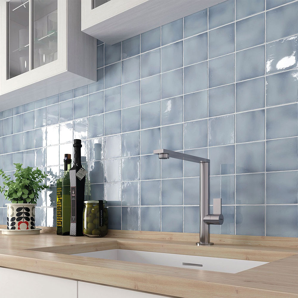 Класс! Плитка голубого цвета выглядит спокойно и стильно. Квадратная глянцевая плитка для стен создаёт ощущение чистоты и лёгкости.
