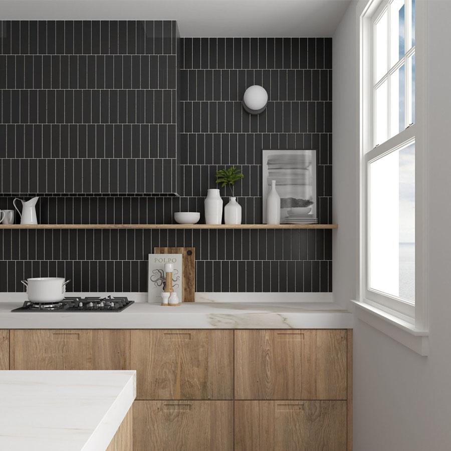 Чёрный цвет плитки добавит в ваш дом нотку элегантности и изысканности. Благодаря размеру 5x20 плитка легко монтируется и позволяет создавать интересные композиции.