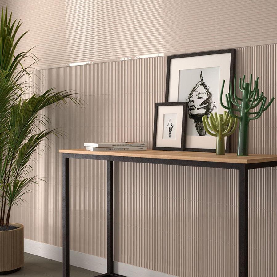 Прямоугольная глянцевая плитка бежевого цвета станет отличным решением для отделки стен. Однотонный цвет коллекции позволяет легко вписать плитку в любой интерьер в стиле эклектика.