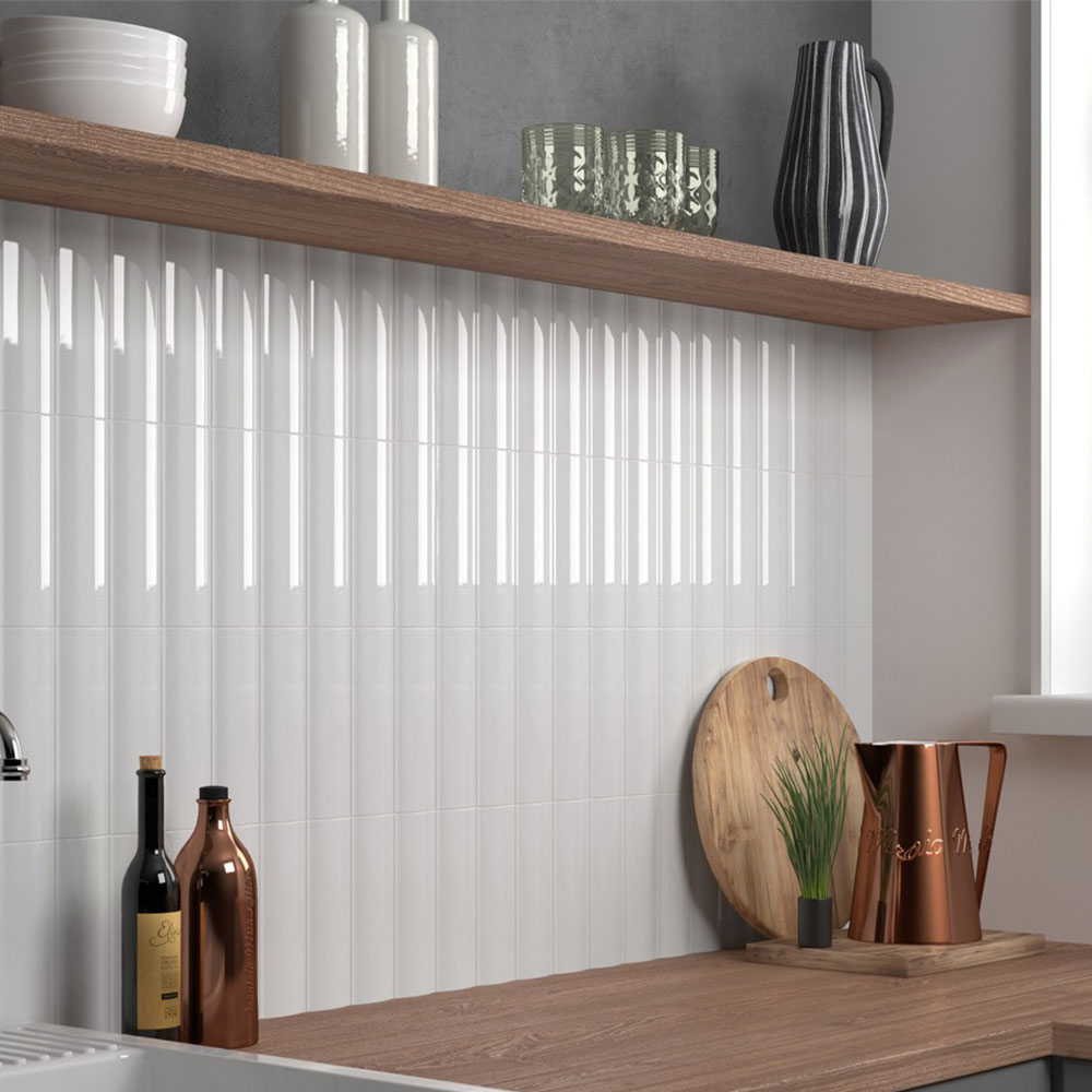 Прямоугольная фигурная плитка Gesso White имеет глянцевое покрытие и однотонный белый цвет, который легко впишется в любой интерьер.