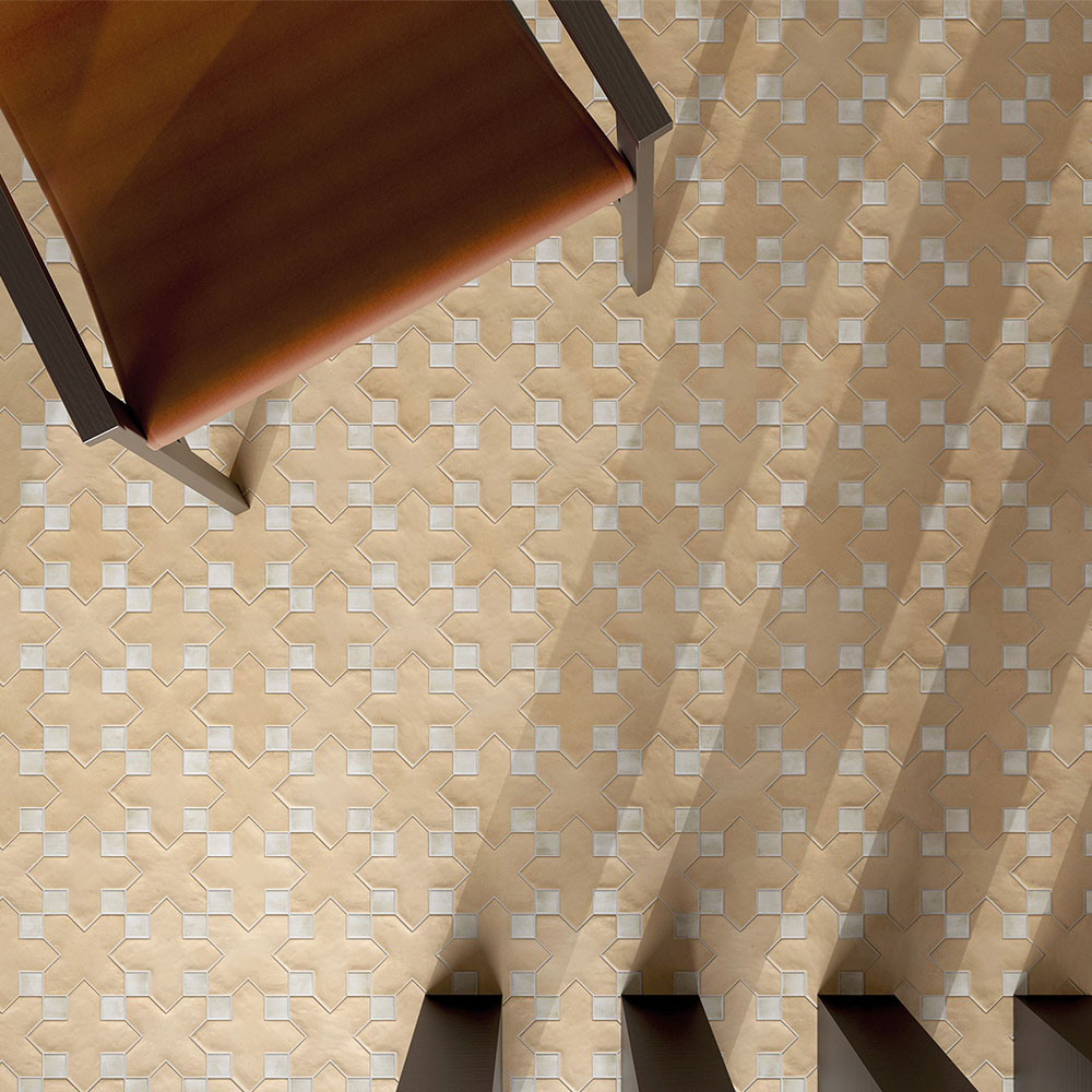 Красивая плитка в форме креста светло-бежевого цвета. Матовая, приятная на ощупь, хорошо смотрится на полу и стенах.