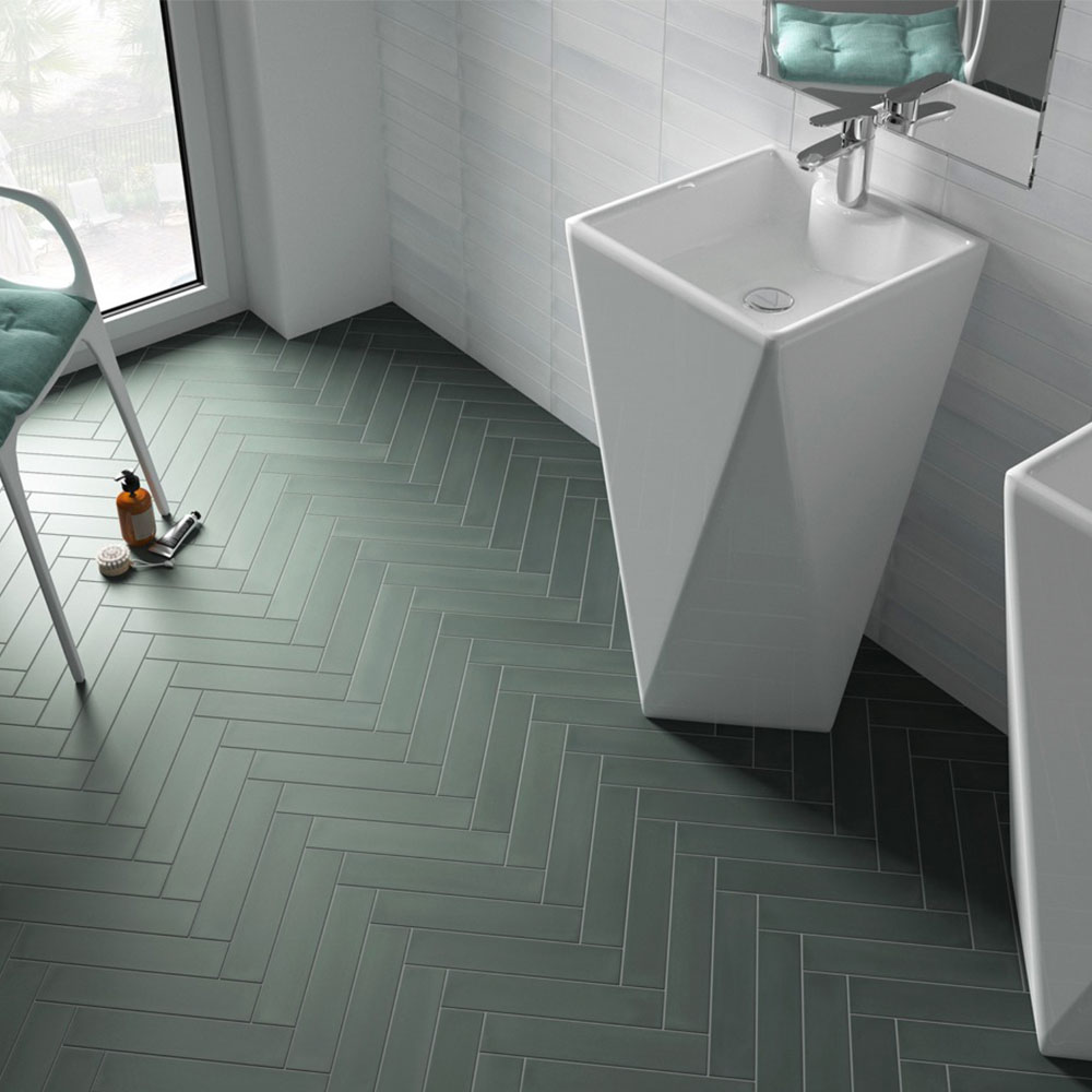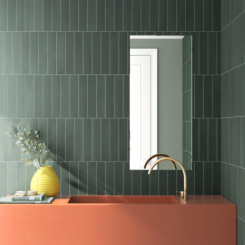 Купил тёмно-зелёную керамическую плитку для стен с матовой поверхностью. Глубокий хвойный цвет придаёт интерьеру спокойствие, испанская плитка выглядит дорого и сочетается с деревом и белыми оттенками.
