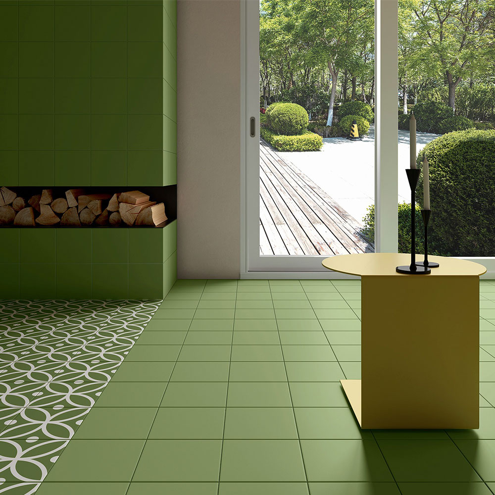 Плитка имеет зелёный оттенок, который придаёт интерьеру свежесть и современный вид. Квадратная форма и орнамент делают керамогранит Equipe Rivoli Bergen Verde универсальным решением для различных дизайнерских концепций.