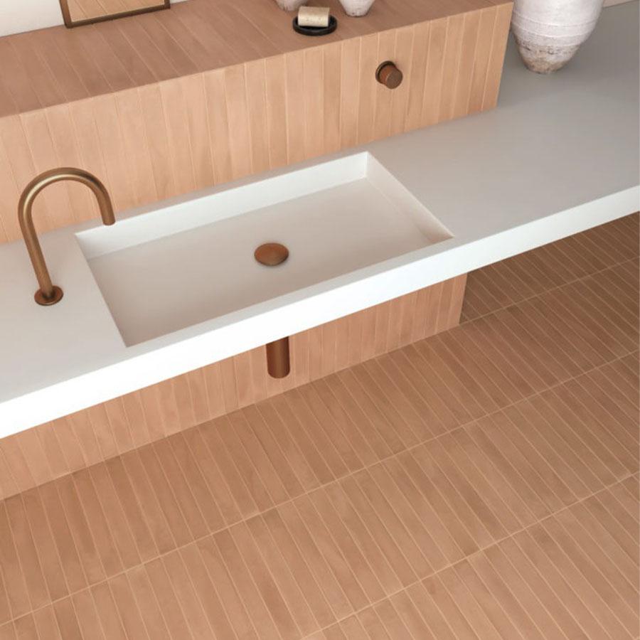 Размер плитки 5x40 см делает её удобной в использовании и позволяет минимизировать количество стыков, что упрощает укладку и придаёт поверхности единый вид.