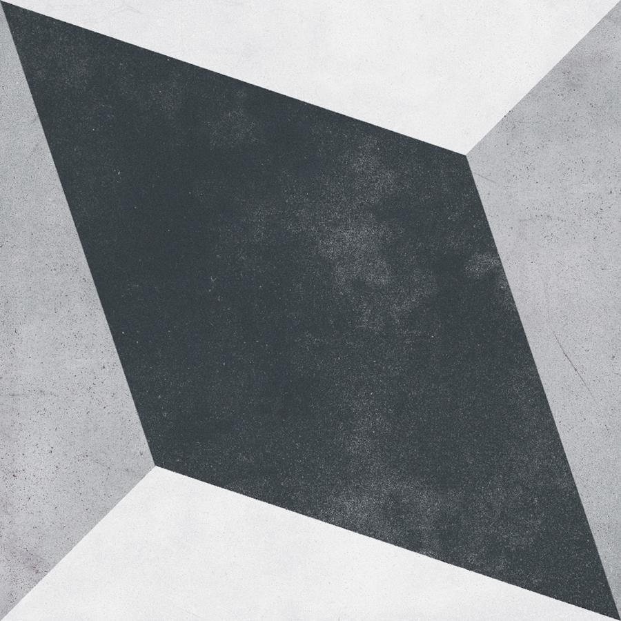 Квадратная форма и геометрический дизайн плитки создают современный и элегантный вид. Серый цвет керамогранита позволяет гармонично вписать его в различные стили интерьера — от минималистичного до более выразительных направлений.