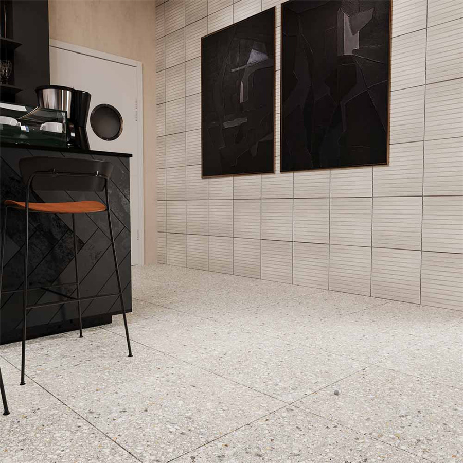 Коллекция Aglomerat отличается стильным дизайном, который подойдёт для различных помещений. Керамогранит в матовом исполнении имеет серый цвет, что позволяет использовать его для создания спокойных и гармоничных интерьеров.
