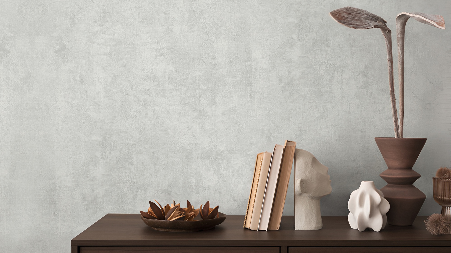 Обои имеют серый цвет, который гармонично впишется в любой интерьер. Они станут стильным фоном для мебели и аксессуаров, не перегружая пространство.