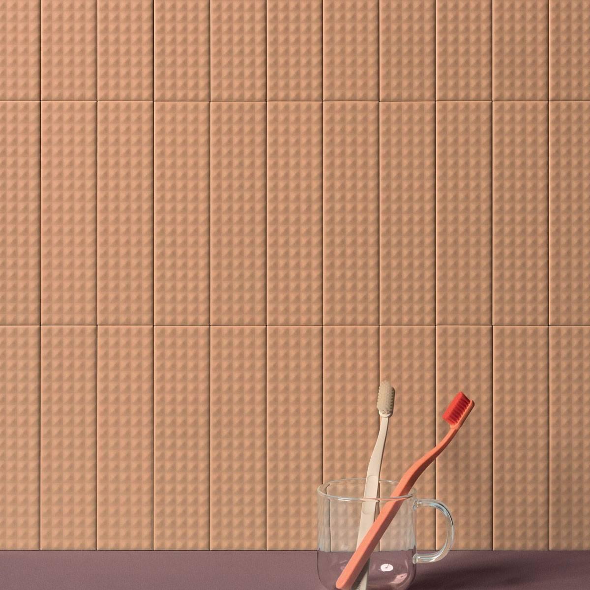 Плитка имеет мелкоформатный размер 5x20 см и прямоугольную форму. Матовая поверхность придаёт ей особый шарм и позволяет легко вписать в любой современный интерьер. Монохромный терракотовый цвет плитки добавляет тепла и уюта в помещение.