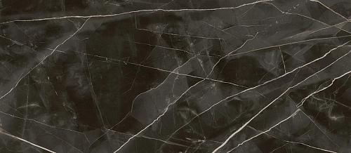Дизайн керамогранита имитирует мрамор, что позволяет создать элегантный и роскошный интерьер. Цвет — чёрный, что делает его универсальным решением для любого стиля.