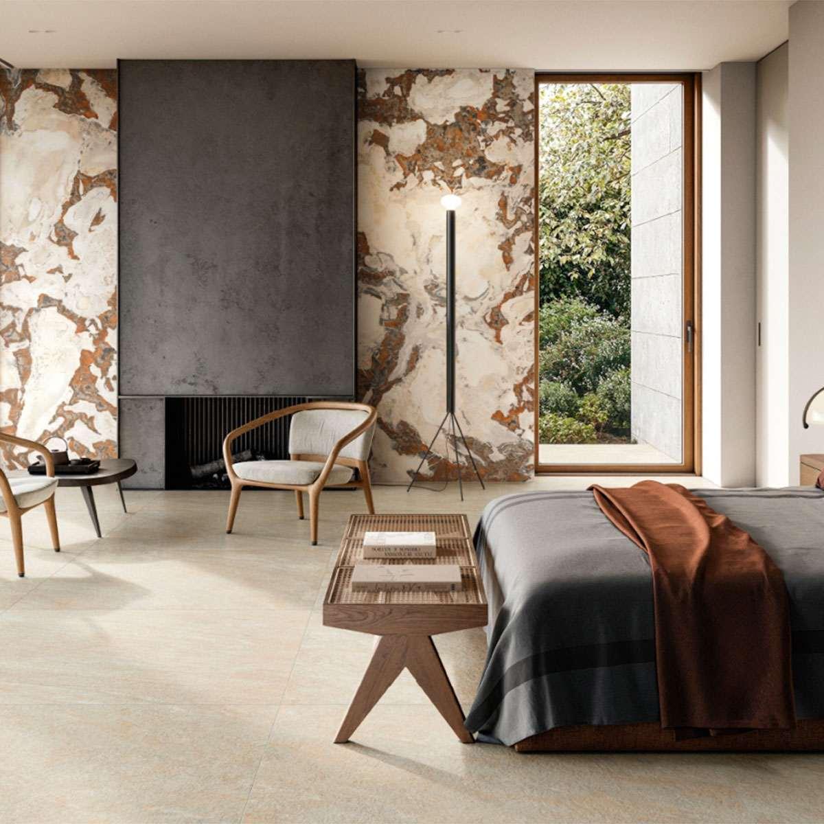 Плитка под камень имеет стильный и лаконичный дизайн, который легко впишется в любой интерьер. Благодаря своему цвету и фактуре керамогранит Италон Magma Ice 120x120 придаст помещению уют и теплоту.
