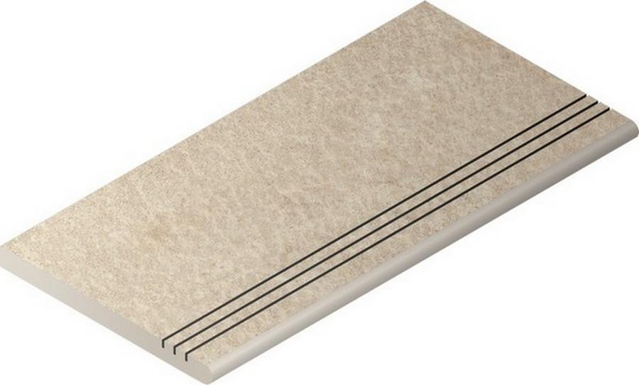 Керамогранит имеет размер 30x60 и бежевый цвет, который гармонично впишется в любой интерьер. Поверхность керамогранита имитирует ступень с рельефным рисунком, что добавляет оригинальности и безопасности покрытию.