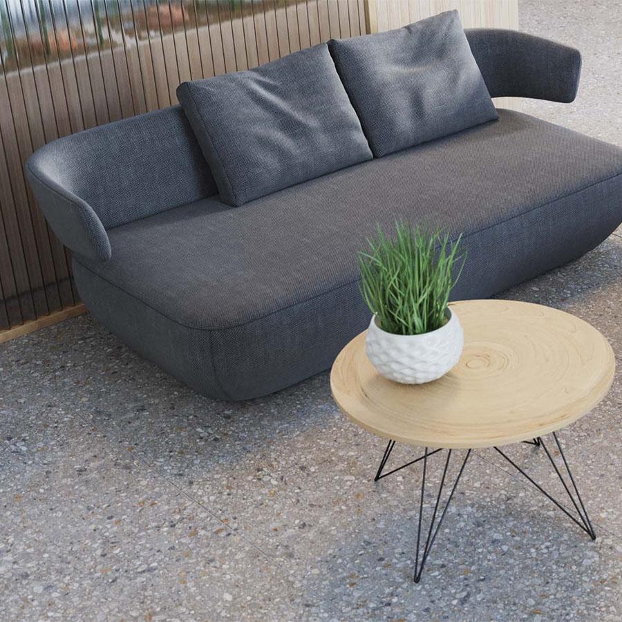 Структурированная поверхность керамогранита Estima Aglomerat Dark Grey AG23 создаёт эффект натурального камня, придавая помещению изысканный и элегантный вид. Размер плитки 60x60 см удобен для монтажа и позволяет минимизировать количество стыков.