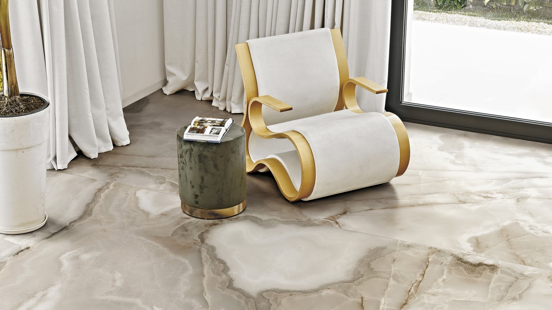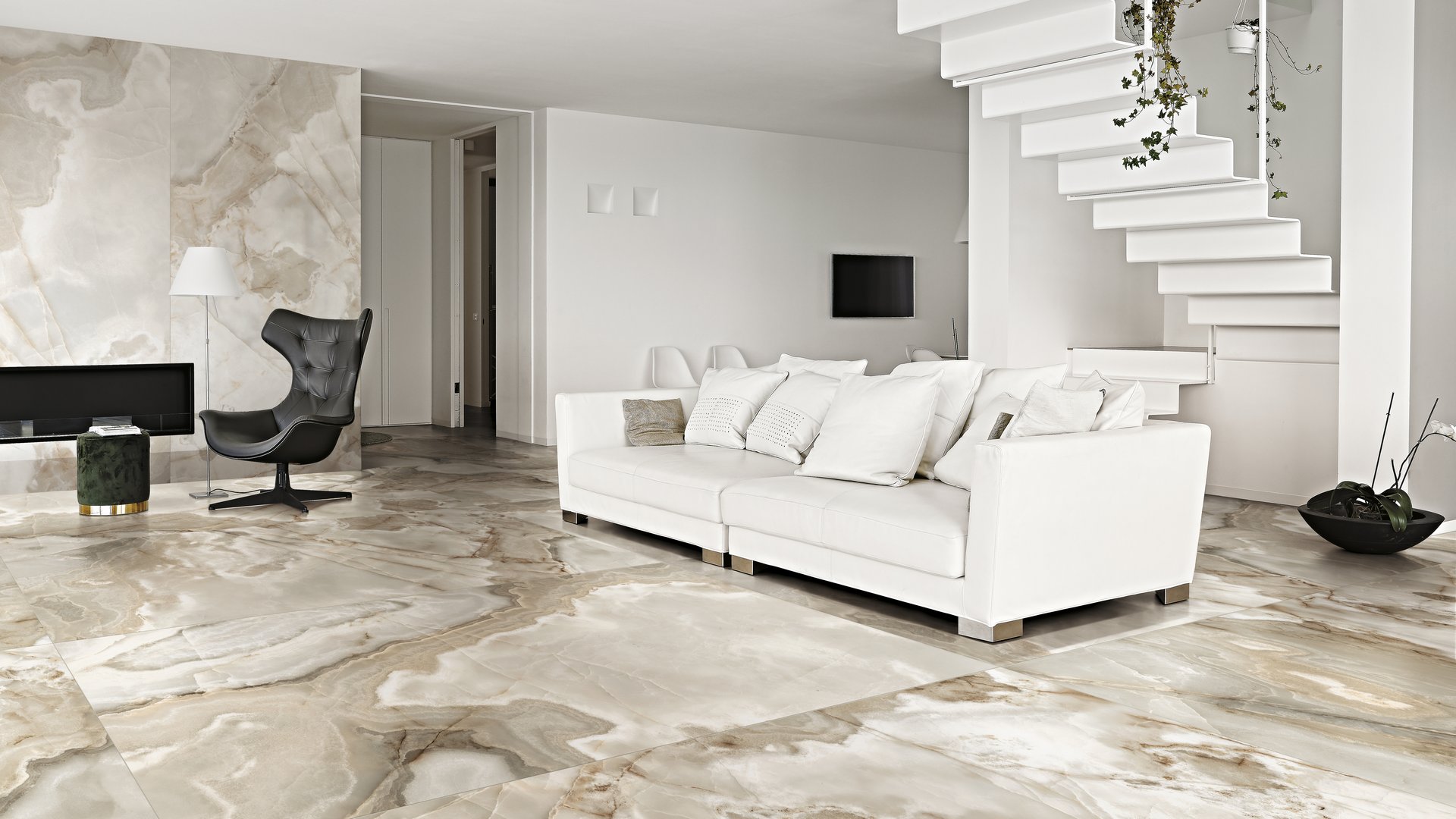 Благодаря своим размерам, керамогранит идеально подходит для укладки на пол. Глянцевая поверхность плитки придает интерьеру особый блеск и элегантность.