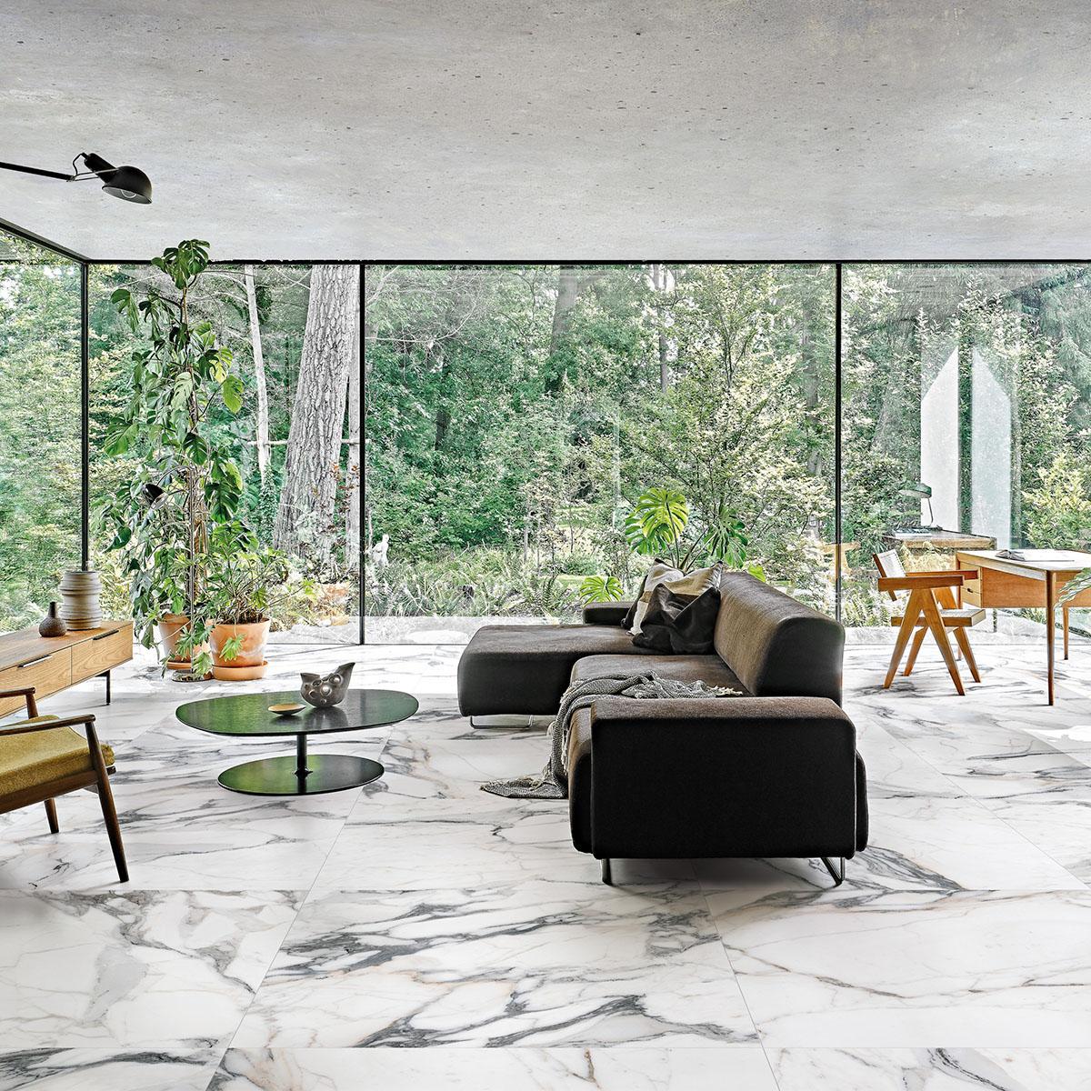 Плитка имеет размеры 60x60 см, что обеспечивает удобство монтажа и гармоничное сочетание с другими элементами дизайна. Керамогранит отличается высокой прочностью и устойчивостью к износу, что делает его идеальным выбором для пола.
