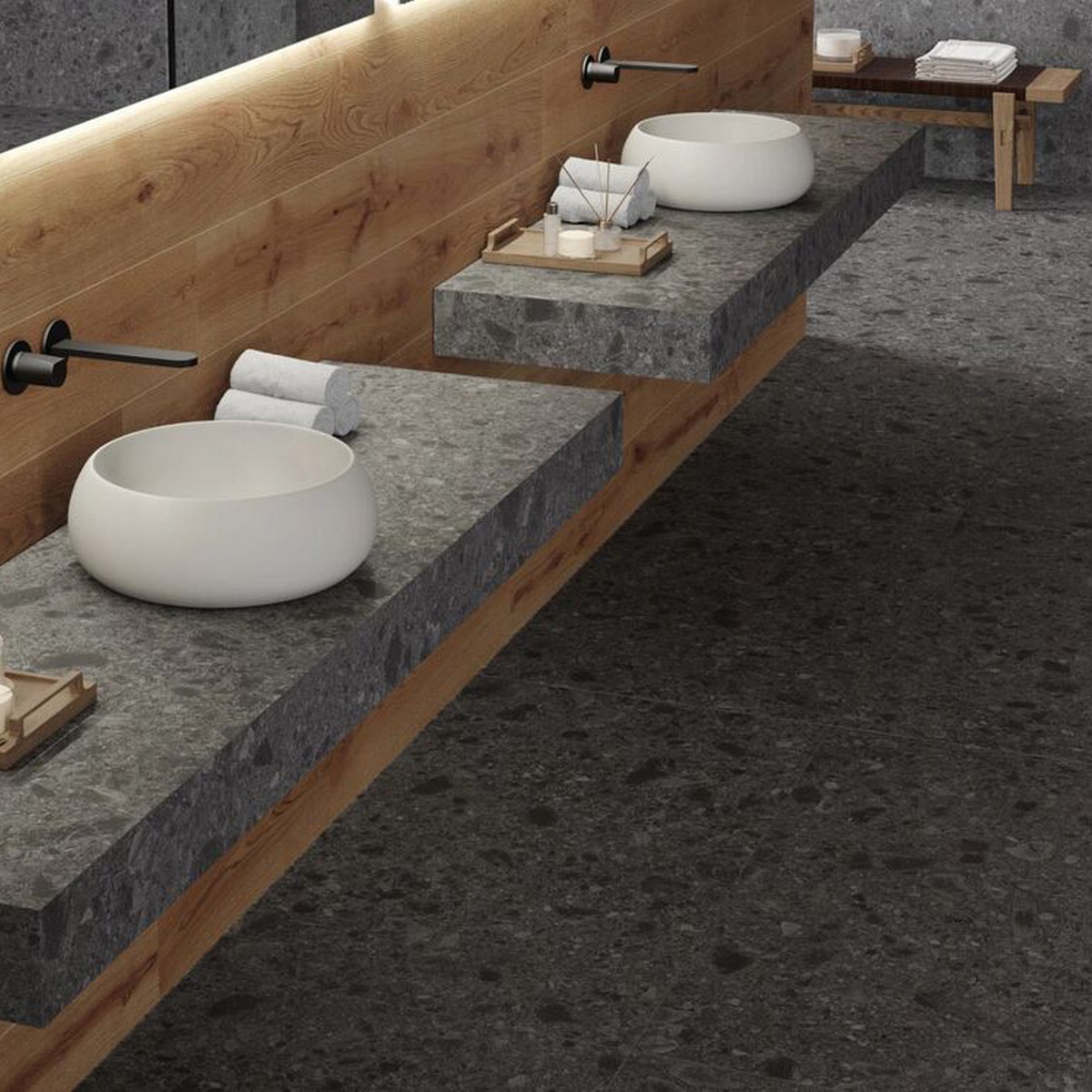 Материал: керамогранит — прочный и долговечный материал, который не боится влаги и механических повреждений.