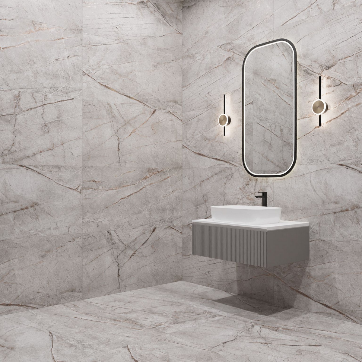 - Материал: керамогранит — прочный и долговечный материал, который не боится влаги и перепадов температур.