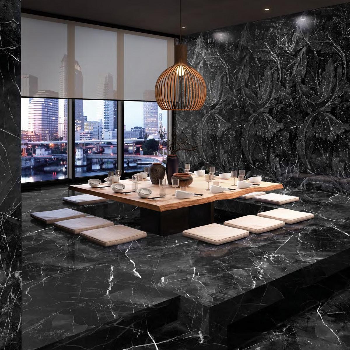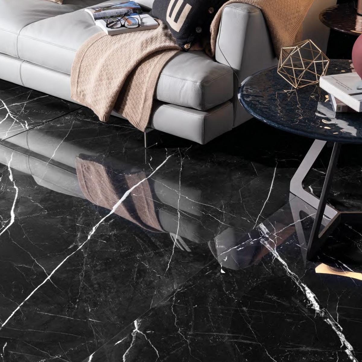Керамогранит Calacatta Black Lappato имеет лаппатированную поверхность, которая придаёт плитке изысканный блеск и элегантность. Подчёркнутая текстура «под камень» создаёт ощущение натурального материала и придаёт интерьеру особый шарм.
