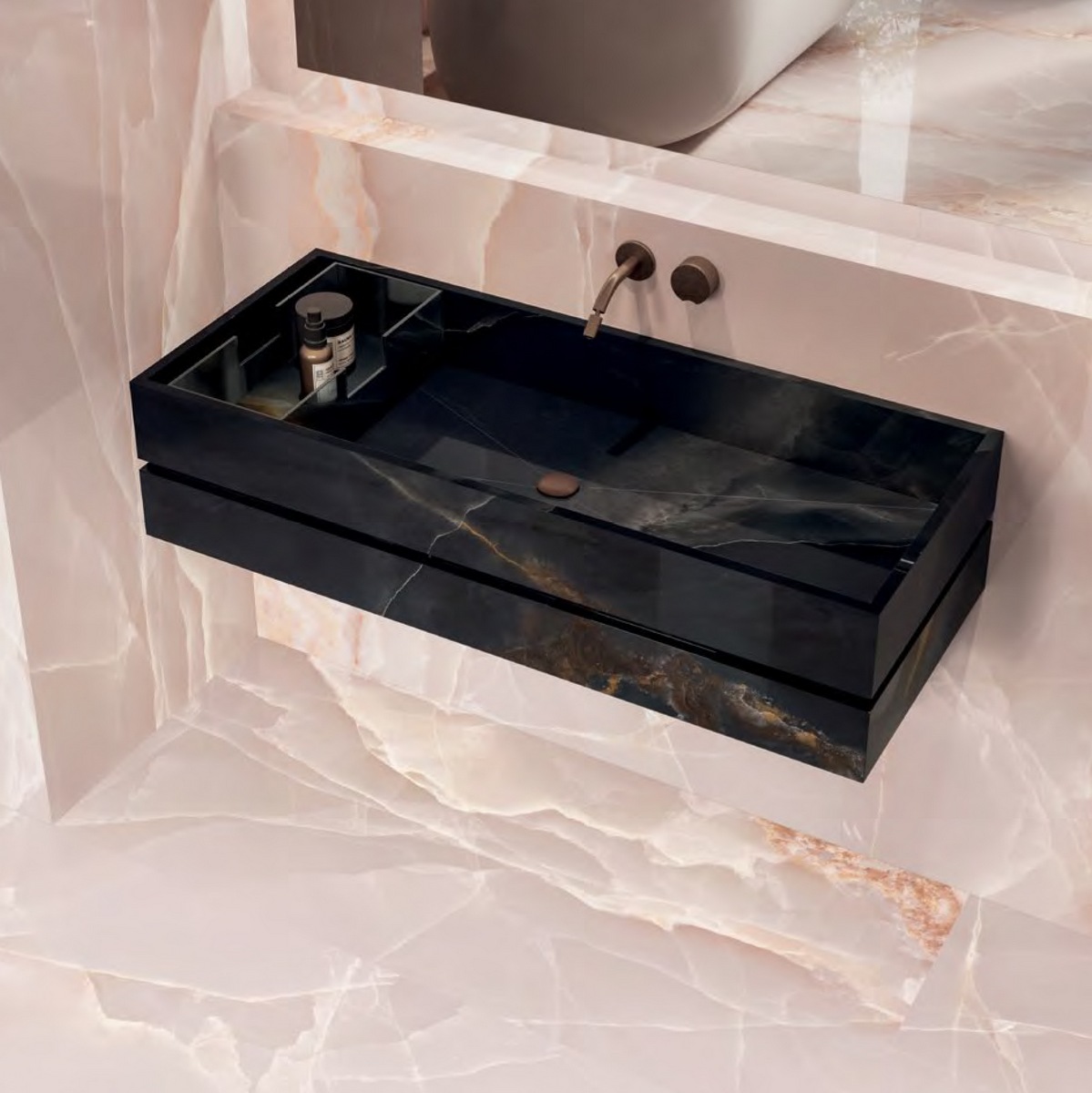 Коллекция Tele di Marmo Onyx воплощает элегантность и изысканность, напоминая о красоте натурального камня. Розовый цвет с шелковистой текстурой придаёт помещению утончённый и современный вид.