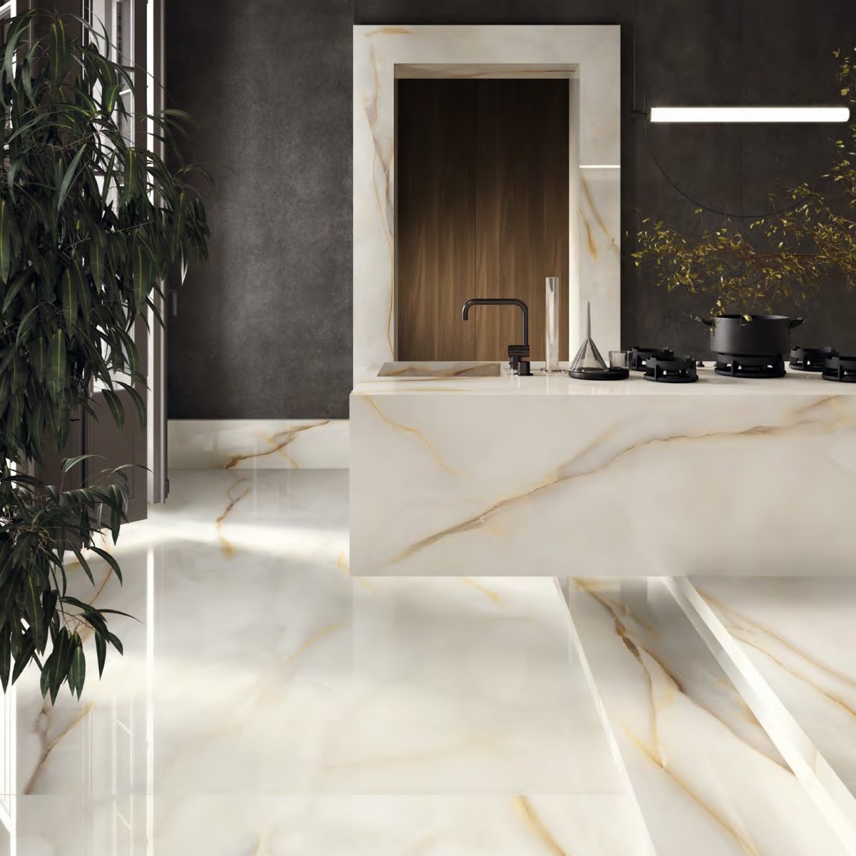 Коллекция Tele di Marmo Pure Onyx отличается изысканным дизайном, вдохновлённым красотой натурального оникса. Прямоугольная форма и размер плитки 120x278 делают её удобной в укладке и позволяют создавать гармоничные композиции.