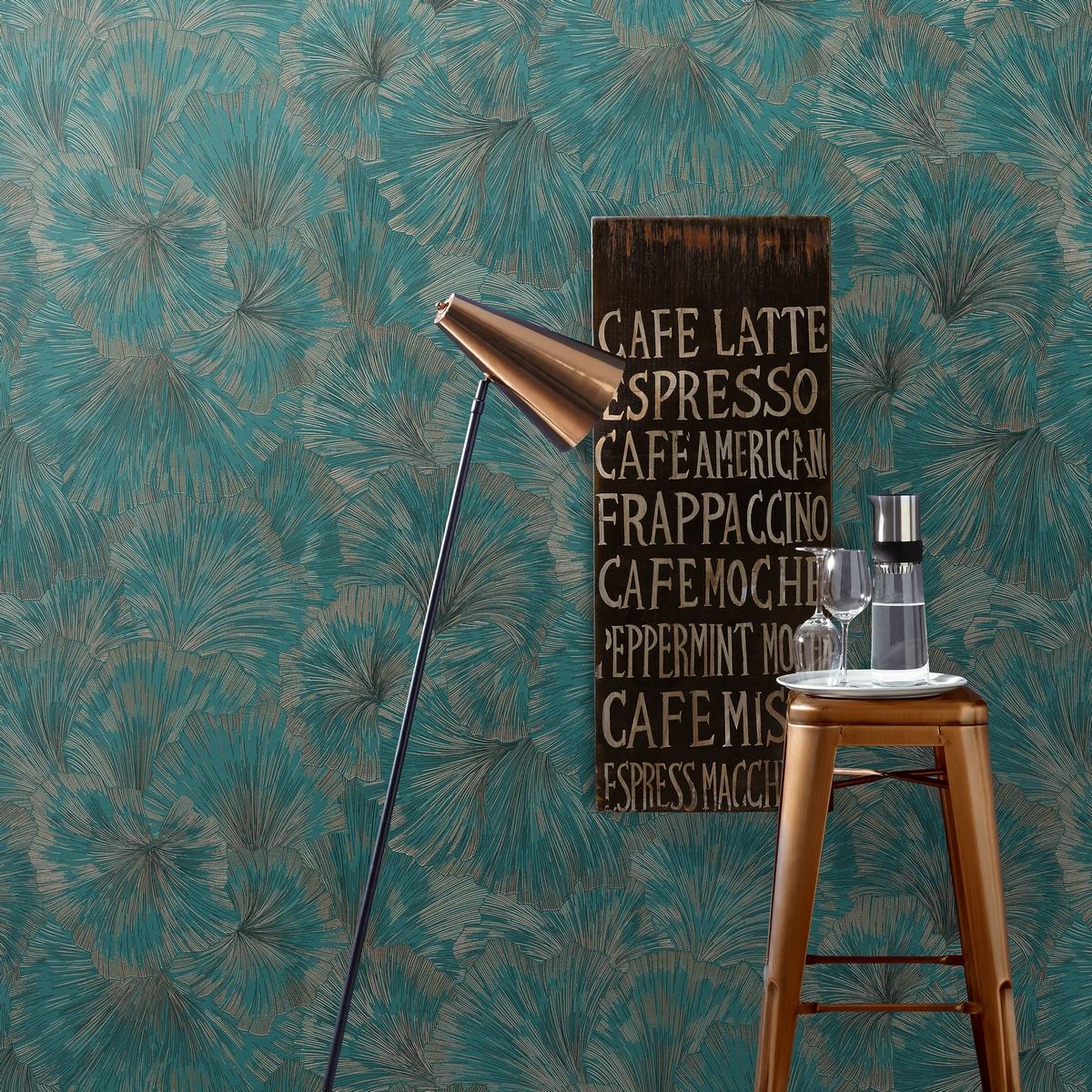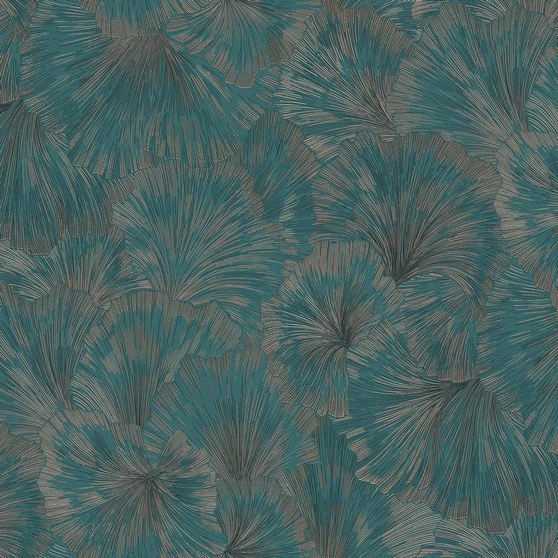 Дизайн обоев выполнен в бирюзовом цвете с флористическим принтом, который добавит изысканности и свежести в интерьер.