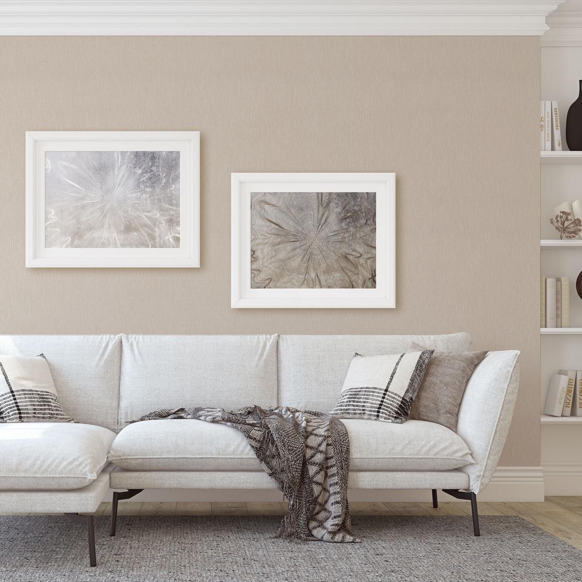 Эти обои выполнены на флизелиновой основе, что обеспечивает прочность и долговечность покрытия. Однотонный бежевый цвет обоев подойдёт для любого стиля интерьера и станет отличным фоном для мебели и декора.