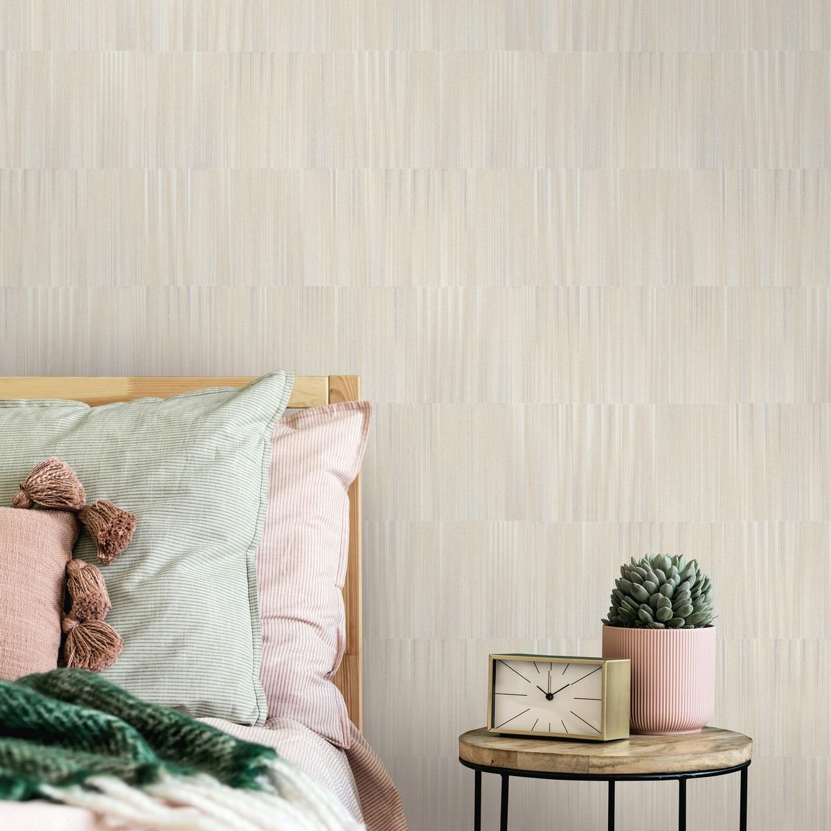 Дизайн обоев представляет собой элегантные бежевые полосы, которые гармонично впишутся в любой интерьер. Они станут отличным выбором для гостиной, спальни или прихожей.