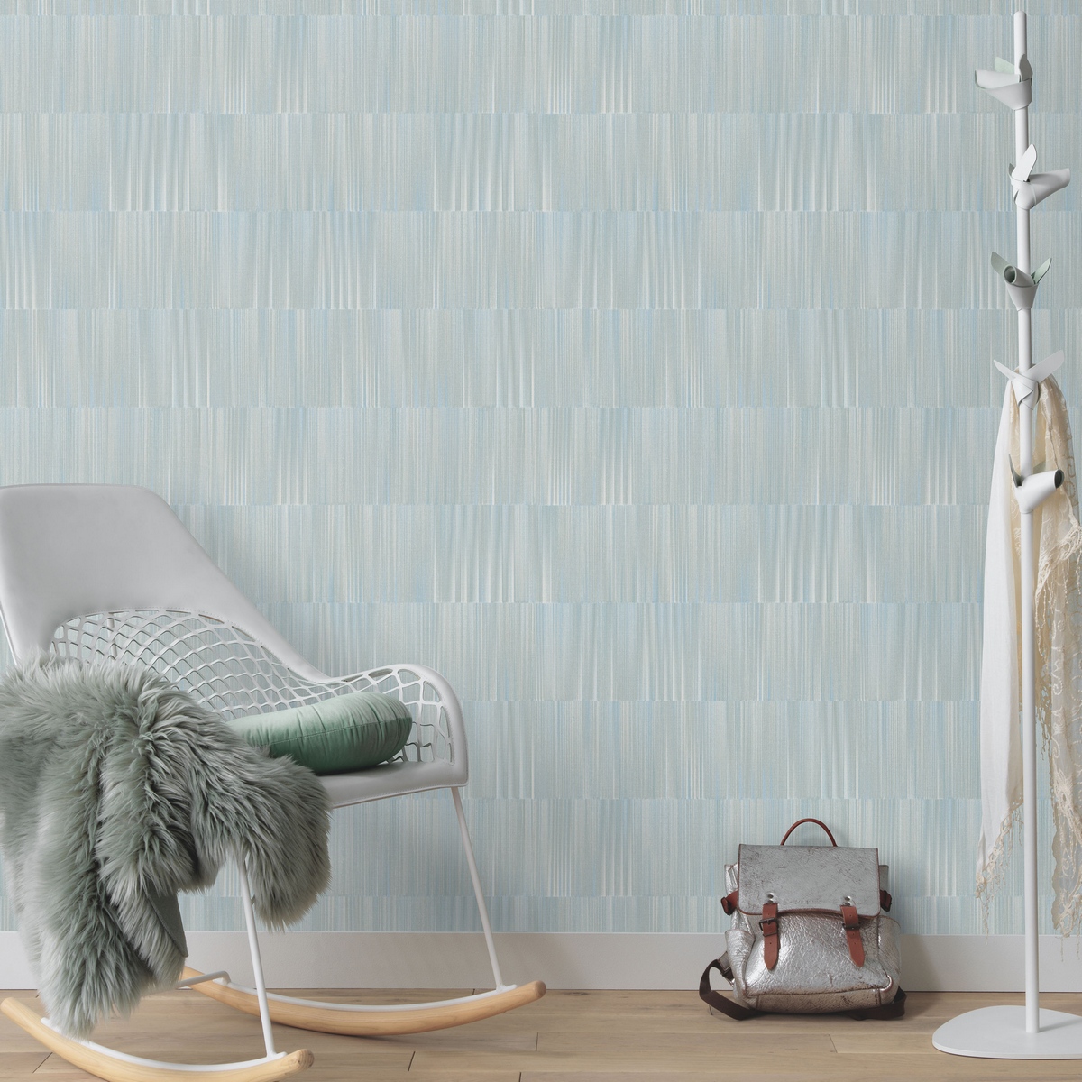 Обои из коллекции Martinique выполнены в голубых тонах и украшены полосками, что придаёт помещению особый шарм и уют. Флизелиновая основа обеспечивает надёжное сцепление с поверхностью и долговечность покрытия.