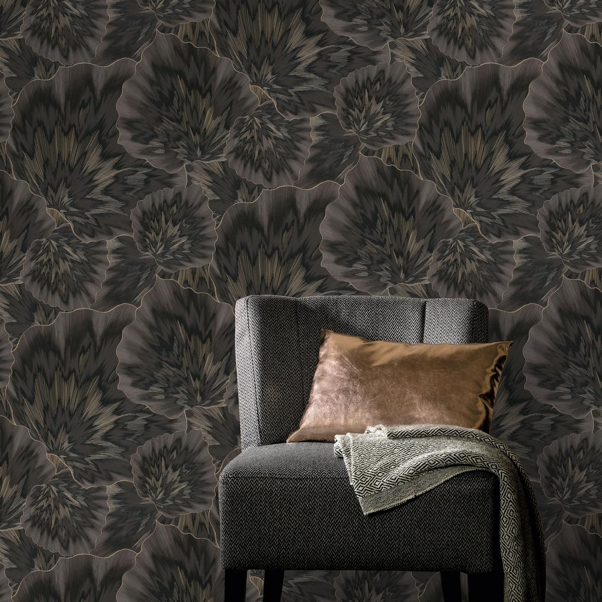 Чёрный цвет обоев добавит интерьеру строгости и элегантности. Коллекция Spotlight 2 сочетает в себе современный дизайн и высокое качество исполнения.