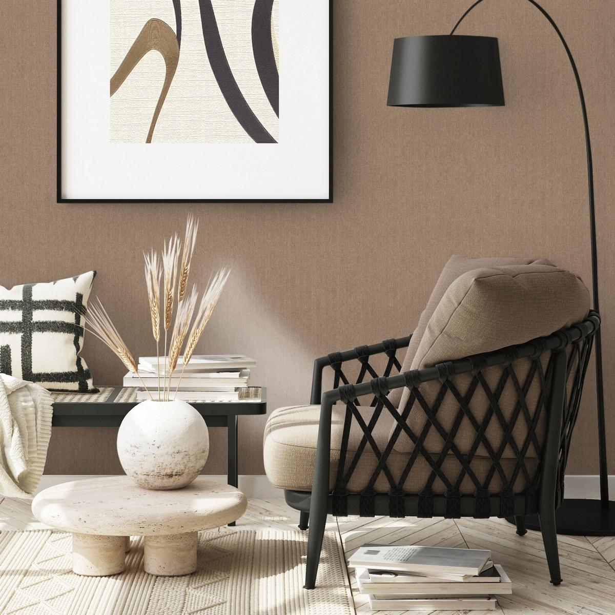 Коричневый оттенок обоев добавит интерьеру тепла и уюта, а их моющаяся поверхность позволит легко удалять загрязнения и поддерживать чистоту в помещении.