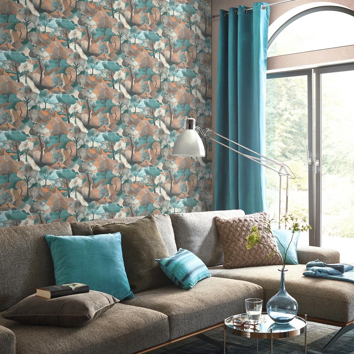 - стильный дизайн с изображением деревьев в бирюзовых тонах.