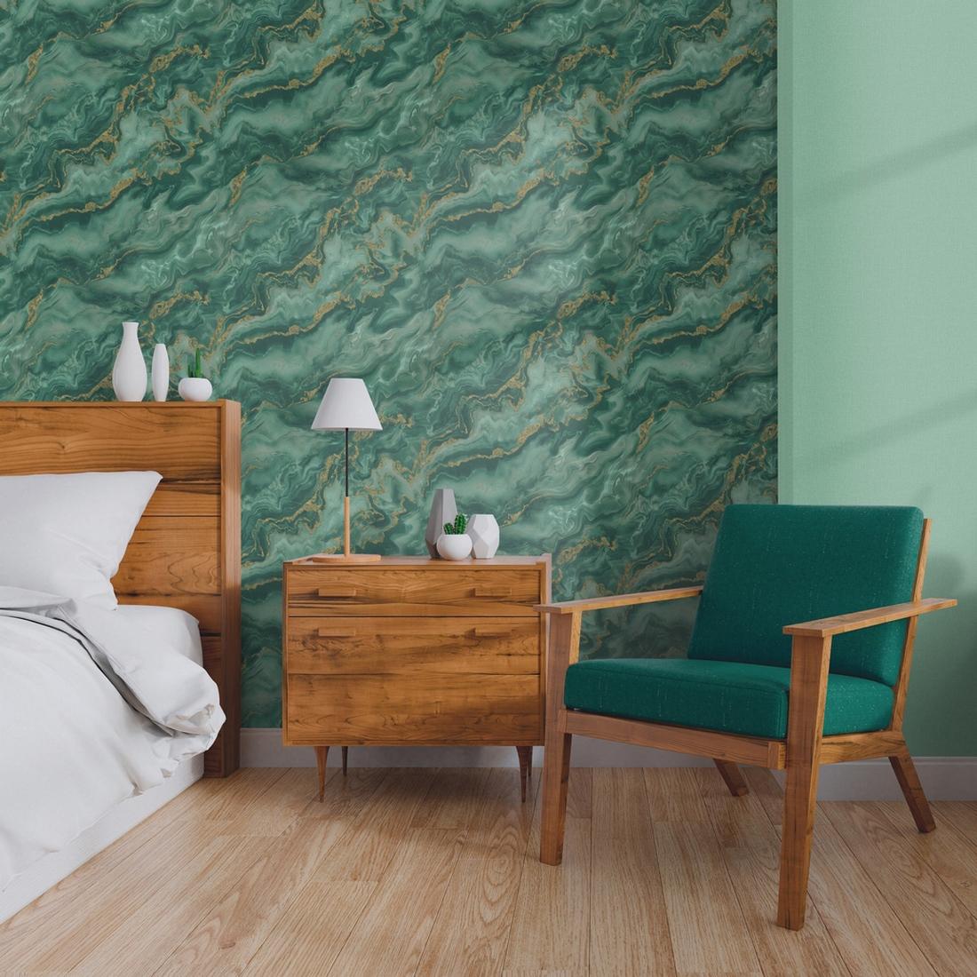Обои выполнены в изысканном изумрудном цвете, который добавит свежести и яркости в ваш интерьер. Благодаря флизелиновой основе они легко наклеиваются и не деформируются после высыхания. Виниловое покрытие обеспечивает долговечность и устойчивость к влаге, что делает эти обои идеальными для любых помещений.