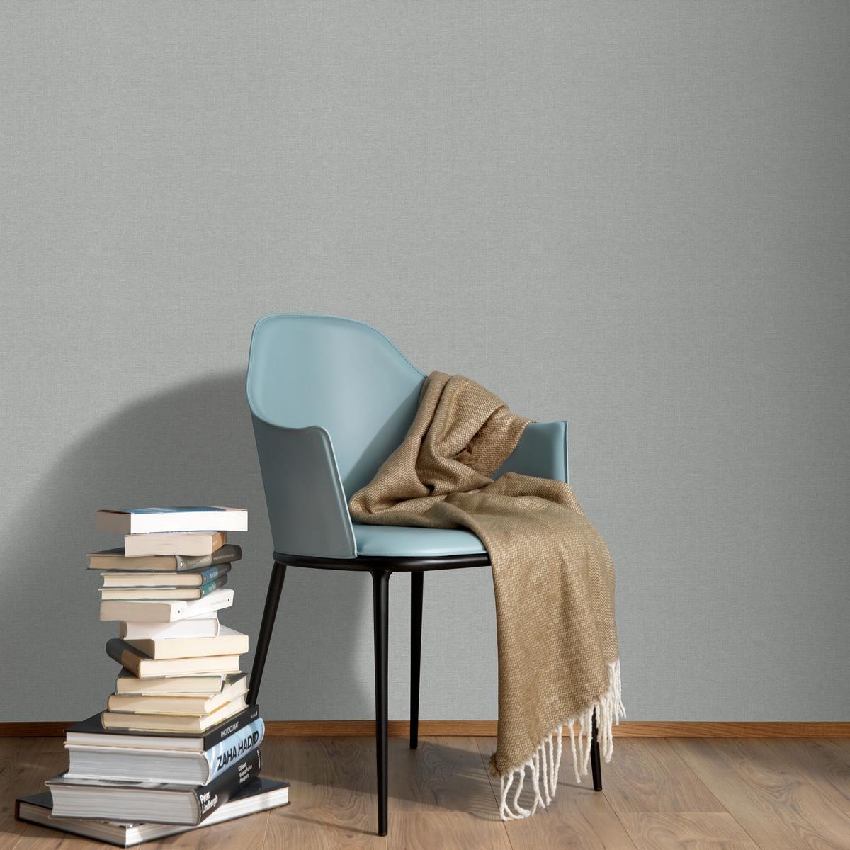 Особенность коллекции — отсутствие рисунка. Однотонный серый цвет обоев позволяет создать спокойную и гармоничную атмосферу в интерьере.