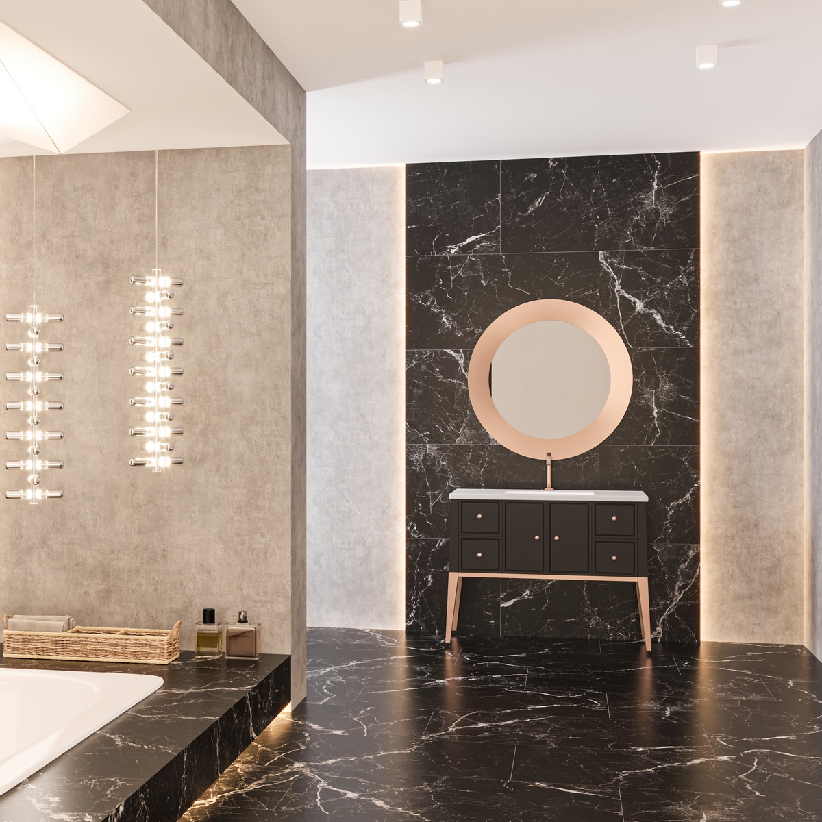 - Цвет: чёрный — под мрамор, что делает плитку стильной и элегантной.