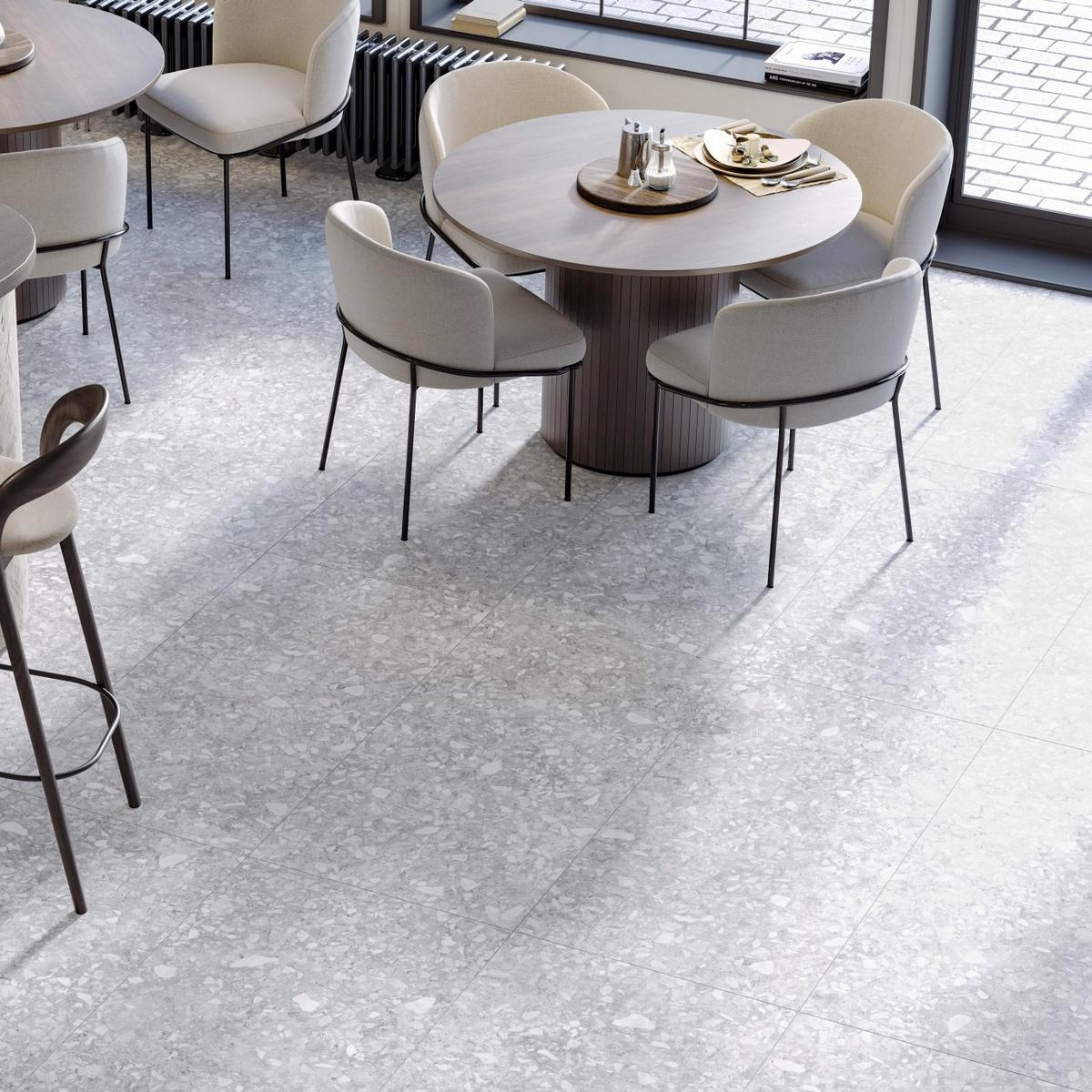 Керамогранит Molekula Gray Matt обладает повышенной морозостойкостью, что делает его идеальным решением для использования в помещениях с высокой нагрузкой на пол. Он также прекрасно подходит для оформления полов в стилях, вдохновлённых терраццо и классикой.