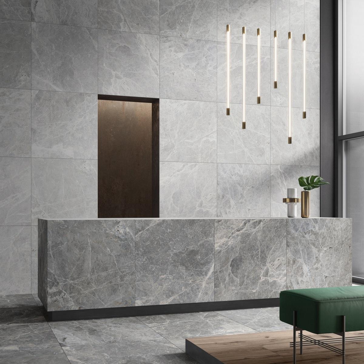 Благодаря своим размерам, керамогранит идеально подходит для отделки стен в различных помещениях. Лаппатированная поверхность придает плитке особый шарм и элегантность, а светло-серый цвет гармонично впишется в любой интерьер.