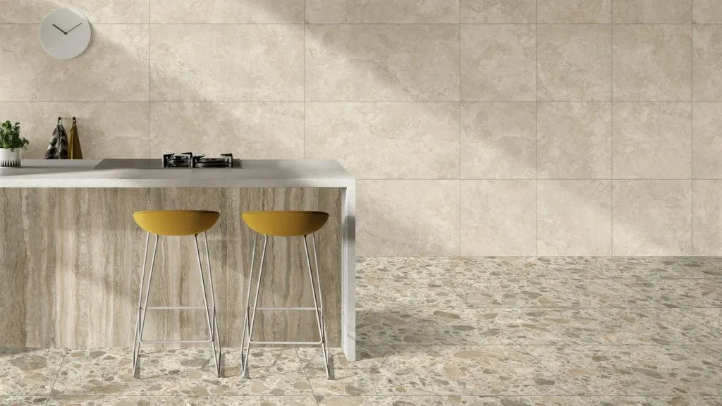 Прямоугольная форма плитки позволяет создавать разнообразные дизайнерские решения. Керамогранит Vitra CityStone Травертин Клауд идеально подходит для отделки пола в гостиной, прихожей, кухне или ванной комнате.