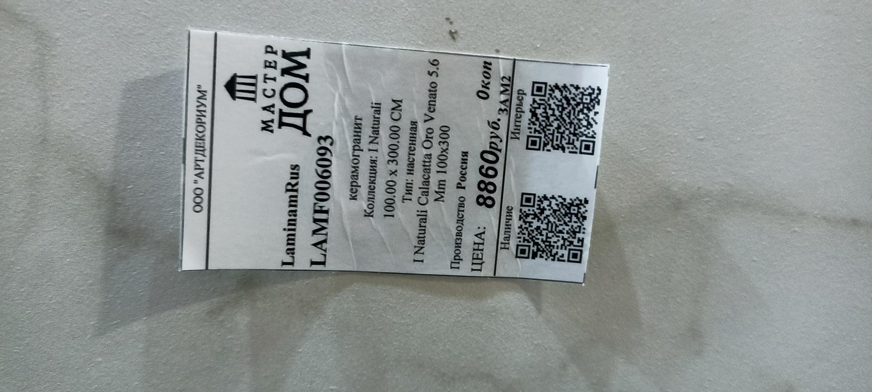 Страна производства — не Россия, но бренд Laminam известен своим качеством и надёжностью. Артикул LAMF006093a поможет вам легко найти нужный товар в магазинах.
