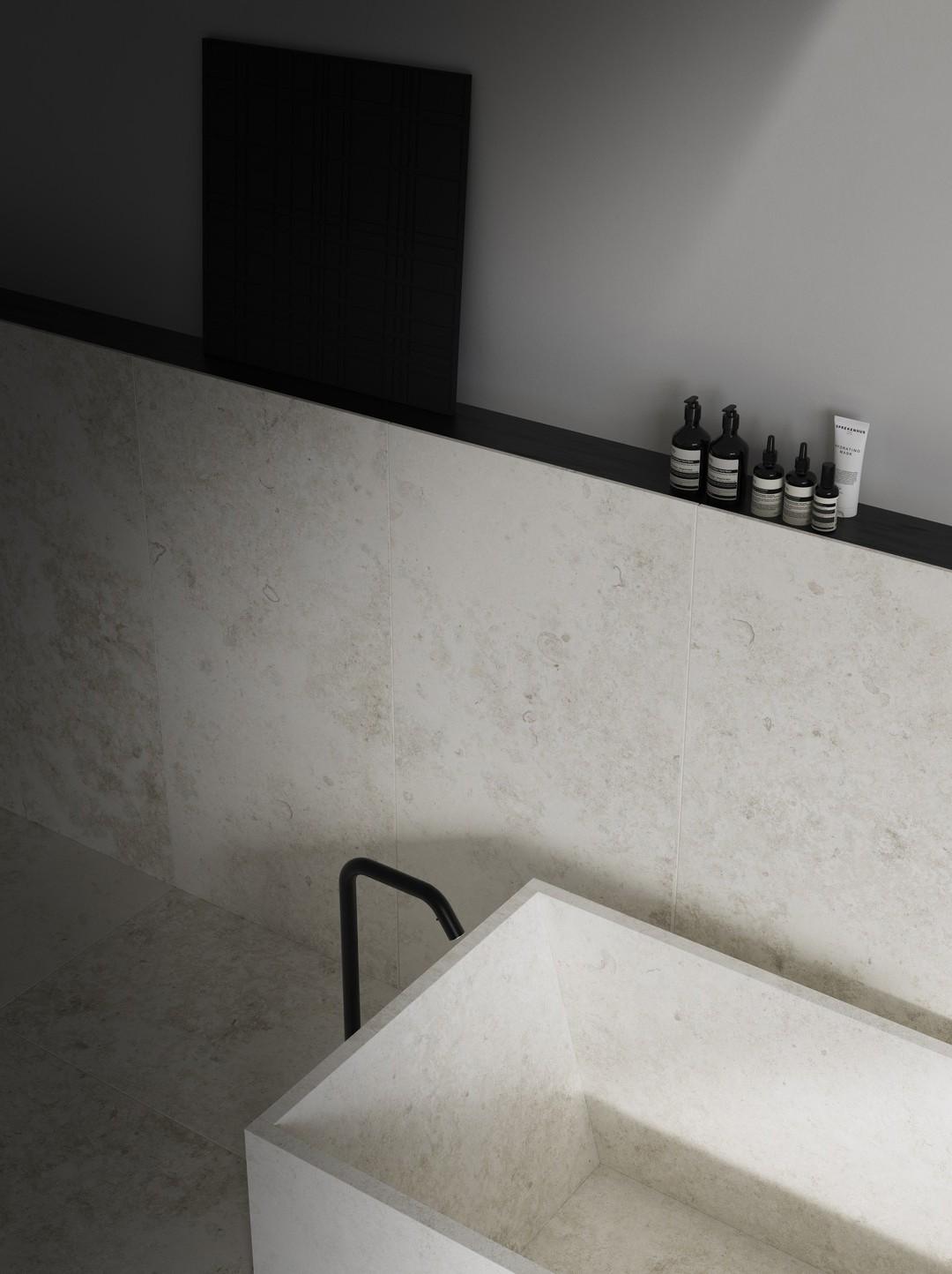 Цвет плитки — серый, который гармонично сочетается с различными стилями интерьера. Благодаря своим размерам и форме, плитка Kendo Ice Soft создаёт ровную и аккуратную поверхность, придавая помещению изысканный вид.