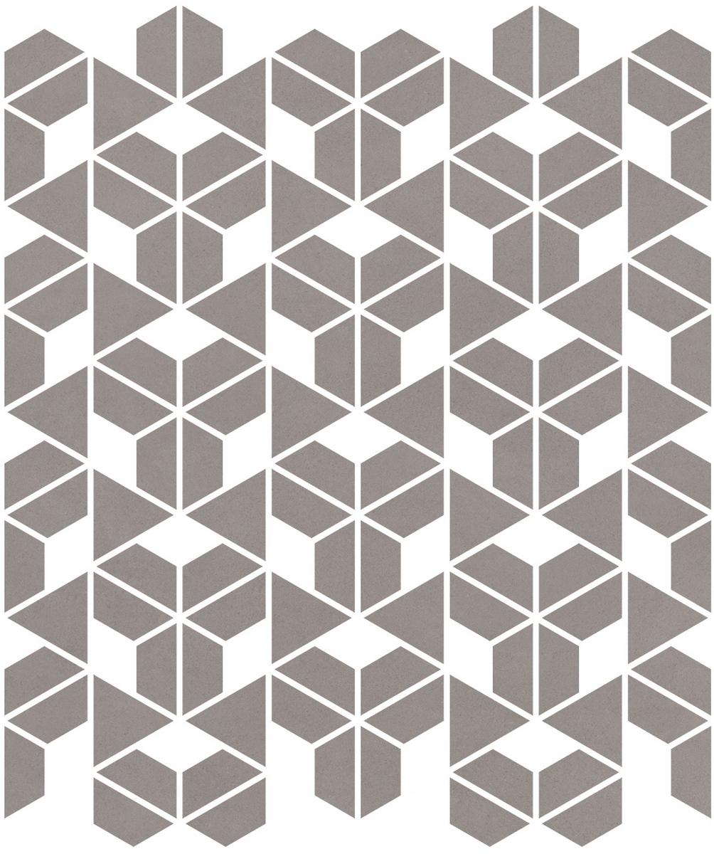 Плитка входит в коллекцию Cava и имеет геометрический дизайн в стиле мозаики. Её размеры составляют 22,8x27,8 см, что позволяет создавать разнообразные узоры и композиции на полу.